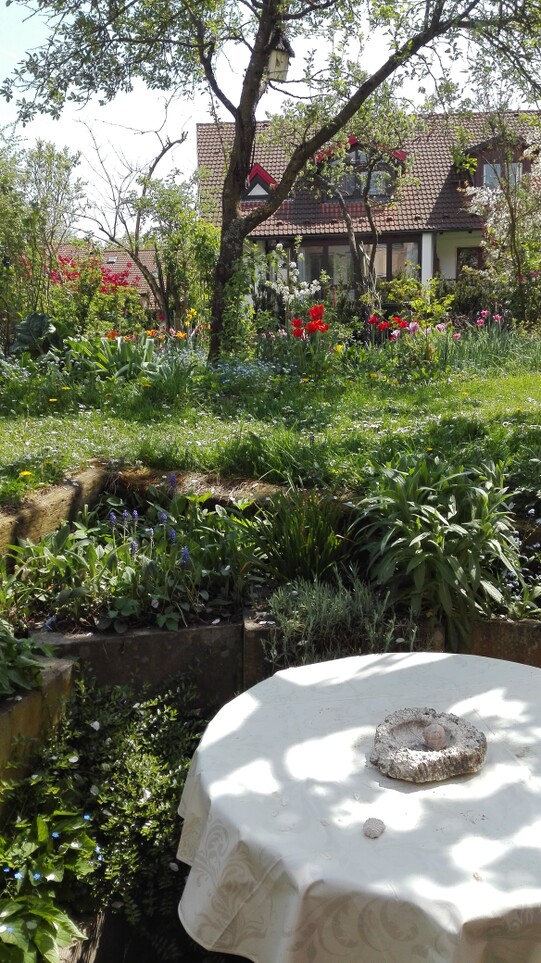 Pour arriver à notre domicile Haselweg 14 à partir de la gare de Tübingen prenez le ligne de bus 2, 3, 4, 5 en direction Waldhäuser-Ost jusquá l´arrêt Erlenweg montez et prenez la première rue à droite et vous arrivez à Haselweg.