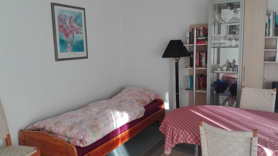 • Living room with a single bed and sofa